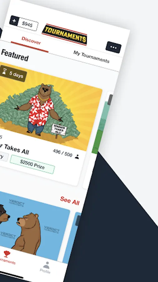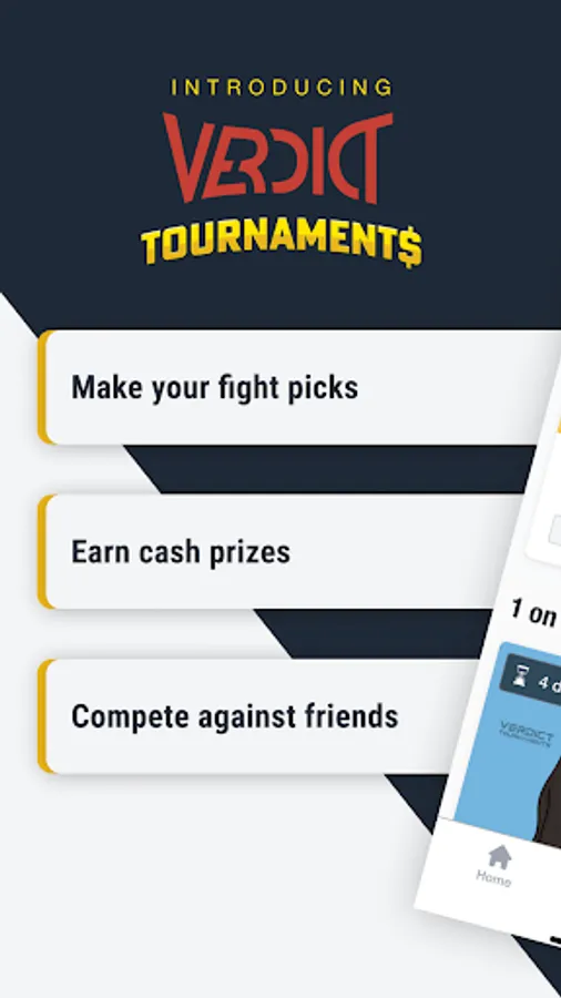 We've taken the leaderboard to another level with Verdict Tournaments, the only platform where we've created an experience for MMA fans and no one else. In Verdict Tournaments, you can use your Fight IQ within a real-money game to win large cash prizes.