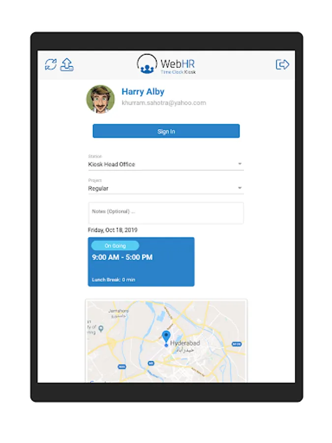 WebHR - Time Clock Kiosk is a Cloud based HR System. WebHR - Time Clock Kiosk Android is a supporting app for WebHR.