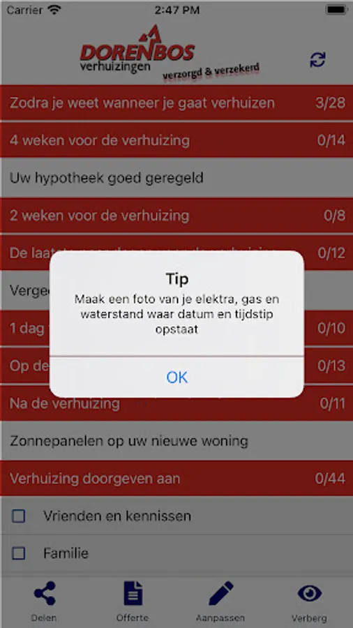 With our app you know what to do during all phases of your move and you can also add tasks yourself, in addition to the handy tasks and points of interest that the app has already created for you, including: