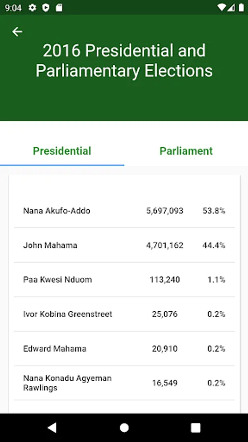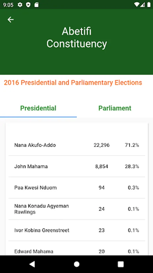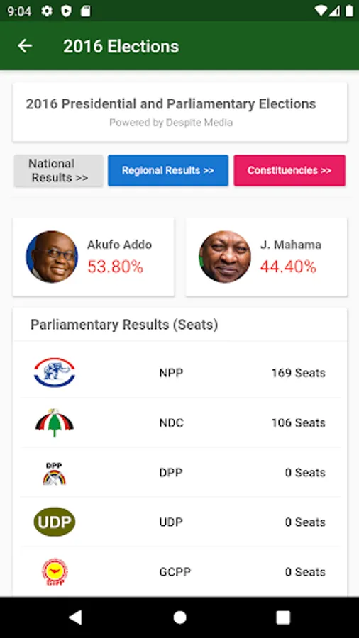 Be updated and more involved in the most important political event of our country. This Ghana Elections App is to make you fully in-touch with all historical and latest election results – This is a beta version and hence has on minimal features.