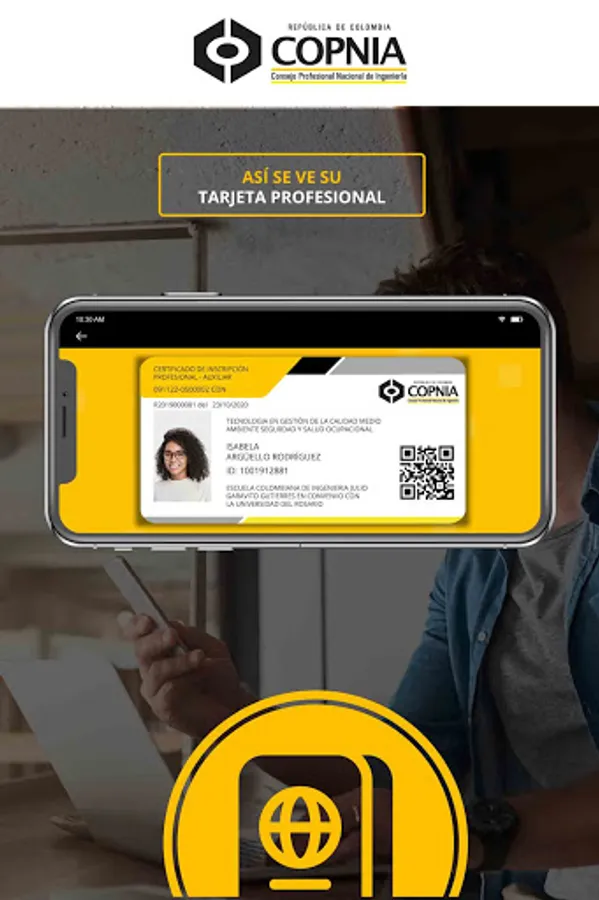 Now the Professional Card and Professional Enrollment Certificate for Engineers, Allied Professionals and Assistants is digital. Download the COPNIA APP and you can have at all times and on your cell phone, the digital card that will authorize the legal exercise of your profession and which can be validated through a QR code.