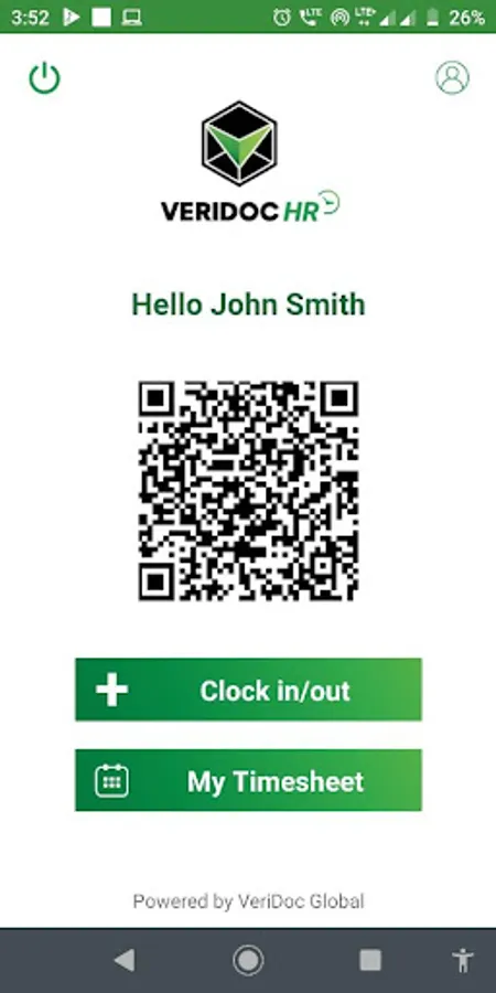 - QR code scanner built into the VeriDoc HR app allowing employees to clock-in and clock-out for the day, replacing the need for biometric scanners