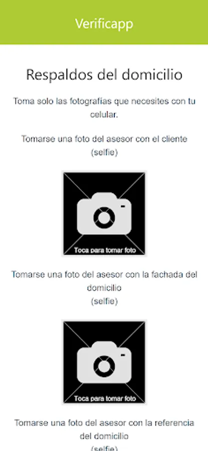 VerificApp is a tool to improve the credit process through home verification of the data reported in a credit application. Use geo-referencing for the exact location of the home, taking photos in real time and generating digital reports immediately after the interview.