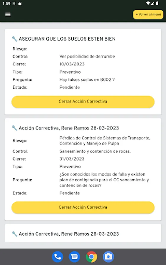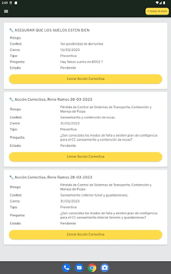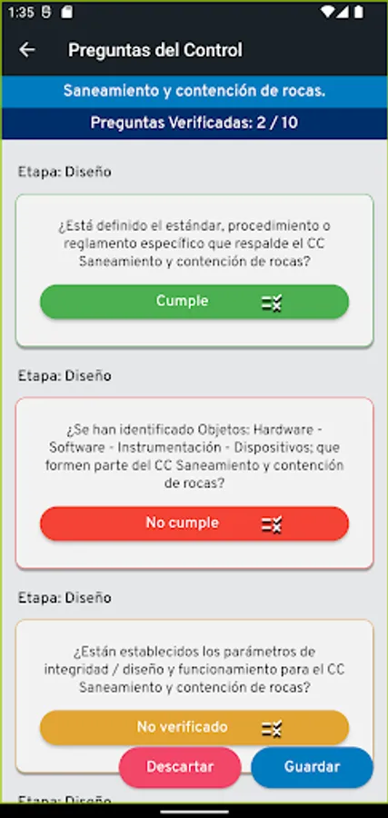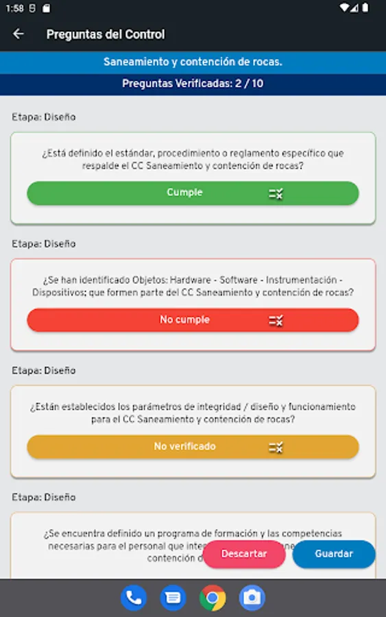 The application can be used online as well as through its offline module, in which verifications and corrective actions are also carried out, which are stored in a local database; for later to have secure internet; Synchronize with the online database.