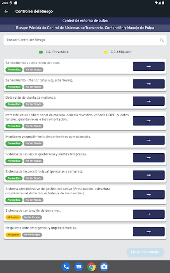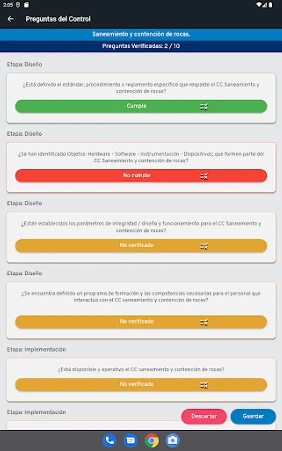 When carrying out a verification, it can be observed and evaluated according to the standard of the requirement established in the platform by the company, where compliance with these can be answered. In the cases where negative evaluations are presented, it is necessary to assign a corrective action to implement an activity that solves that failure, this activity must be verified by the owner of the Critical Control.