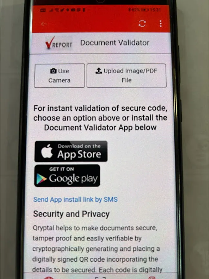 This app allows the end user to scan a secure QR code provided by V Report, this secure QR code holds verified data done by V Report for and on the end user . The end user will be able to scan the QR code on their device which the verifies the QR code and opens the report/s for the end user. This verification is all done on device, no data leaves the device, no data is verified on the V Report server or any third party server.