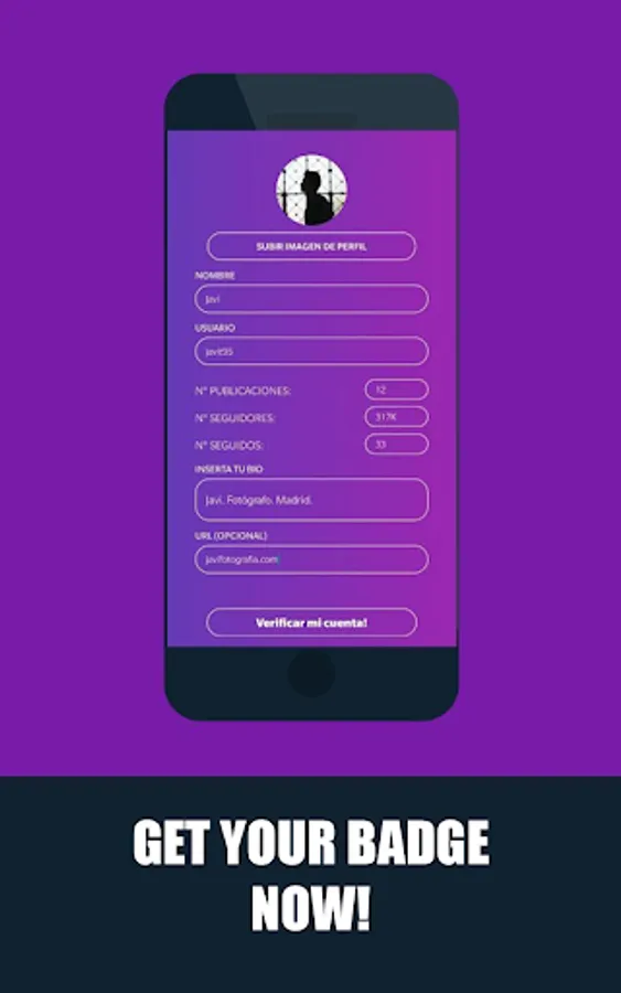 Do you want to be an influence? Or have the profile as a youtuber? This app will give you what you are looking for, you can add the number of followers you want or copy the profile of whoever you want to verify it. Make any friend's profile or your own official.