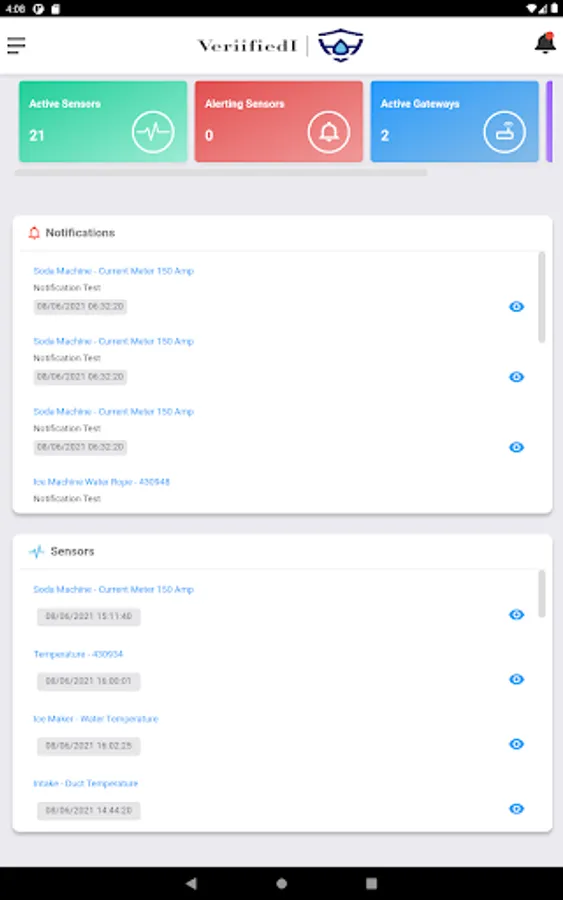 VeriifiedI is an Industrial IoT platform providing customers with a secure portal to monitor their sensors anywhere, anytime. The portal allows for configuration of sensors, as well as management of notification types, frequencies, and sequence of notification. Notifications can be sent to one or multiple people. Water Leaks can happen anywhere at any time. – Notifications instantly notify you when leaks occur, allowing you to make split-second decisions that will save you and your company time and money from costly water damage. Notification Types: email, SMS, phone call.