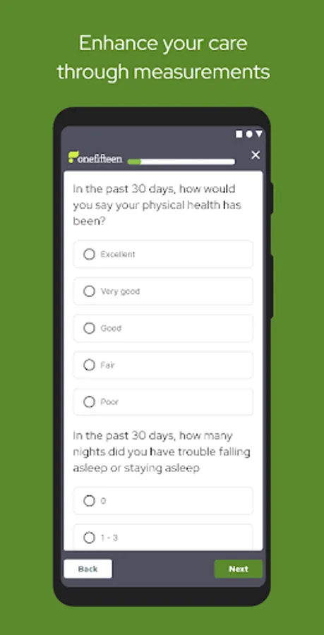 The OneFifteen Patient App is not intended to provide treatment decisions nor is it to be used as a substitute for professional healthcare advice.