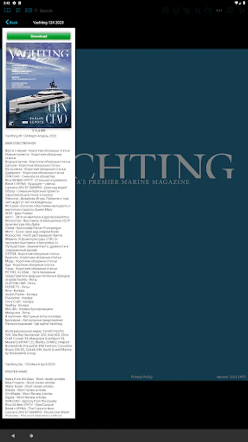 Yachting - first in Russian and the most influential magazine of luxury motor and sailing yachts, and travel routes, prestigious sailing regattas, lifestyle, people and events. Here you will find - exclusive essays about the most fascinating yachts in the world, even more photos and video of course! Interactive Yachting quickly downloadable, easy to read, and always with you at home and on the go!