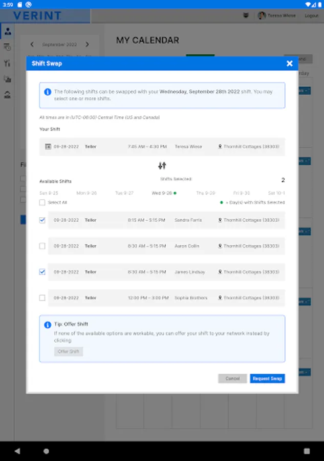 Verint WFM for Branch increases workforce engagement and collaboration with easy to use mobile features. The app is an extension of the core solution. Users can submit time off requests, swap and offer shifts, and set their unavailability preferences on-the-go from their mobile devices. Communication within the organization is made easy through our Connect platform.