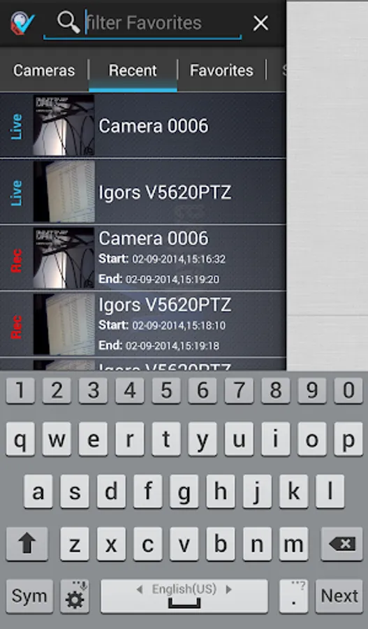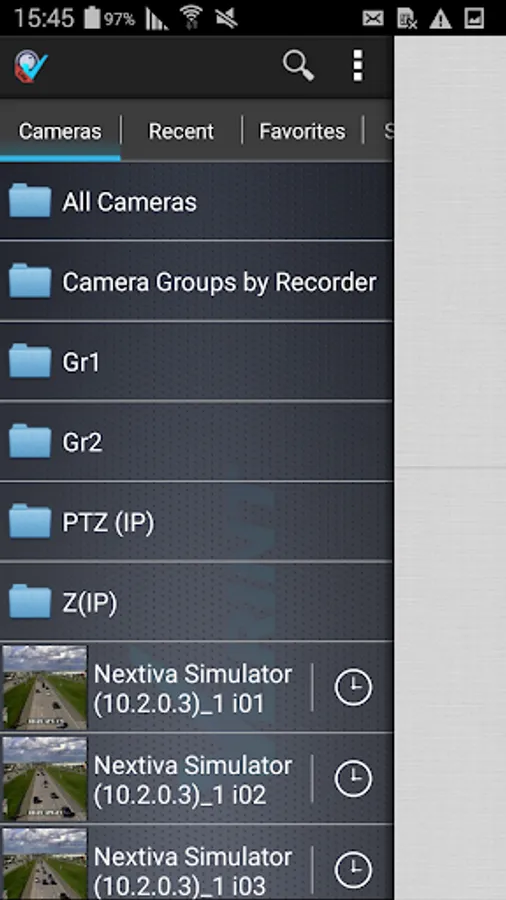 • Easy access to cameras from the Camera Tree, Favorites or Recents