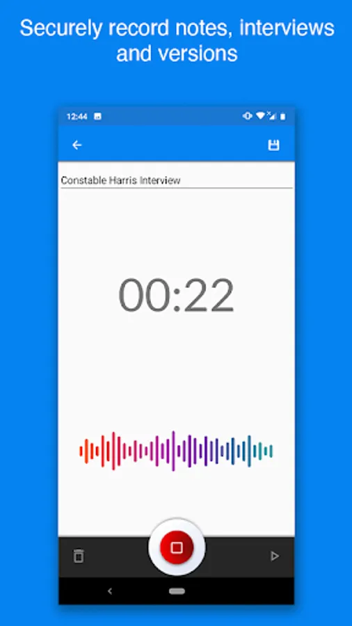 Encrypted Voice Recording: Capture valuable information and evidence with encrypted voice recordings securely stored in your Verinote PROTECTED server and purged from your device to eliminate risk.