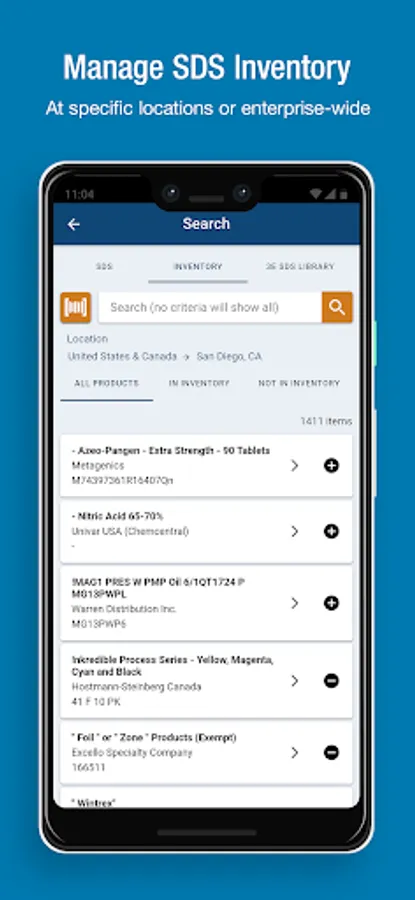 • Enable users to add or remove SDSs from specific inventory locations and view, access and save them