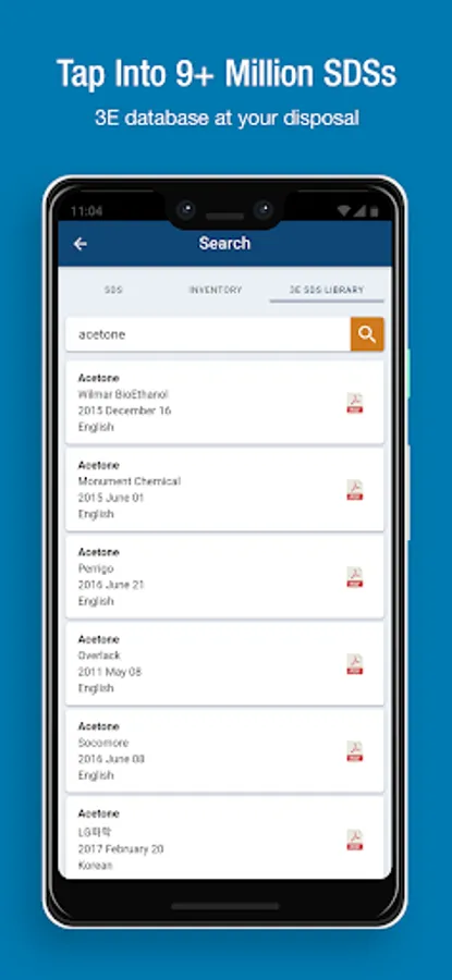 • Quickly and easily find up-to-date SDS in your SDS catalog, specific inventory locations, or 3E's database of 10+ million SDS.