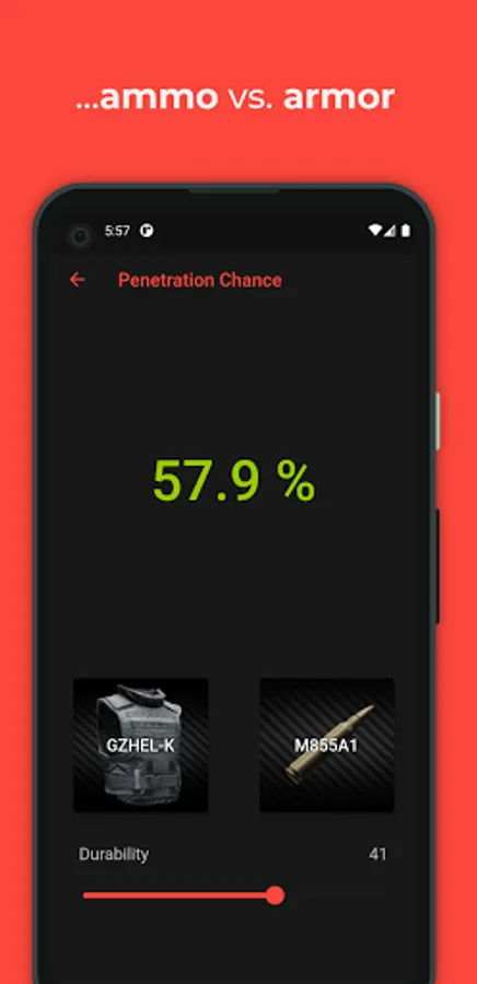 The unofficial Escape from Tarkov companion app, brought to you by Veritas with help from his community, is just what every PMC needs by their side before, during, and after their raids! Search, view, and compare everything from firearms, ammo, and body armor, to medical items and melee weapons. Interactive ballistics calculators help you learn about damage, penetration, and fragmentation of different rounds vs. different types of armor and enemies. Informational write-ups on the various systems in the game and how they work, from a high-level perspective, and so much more coming in the future!