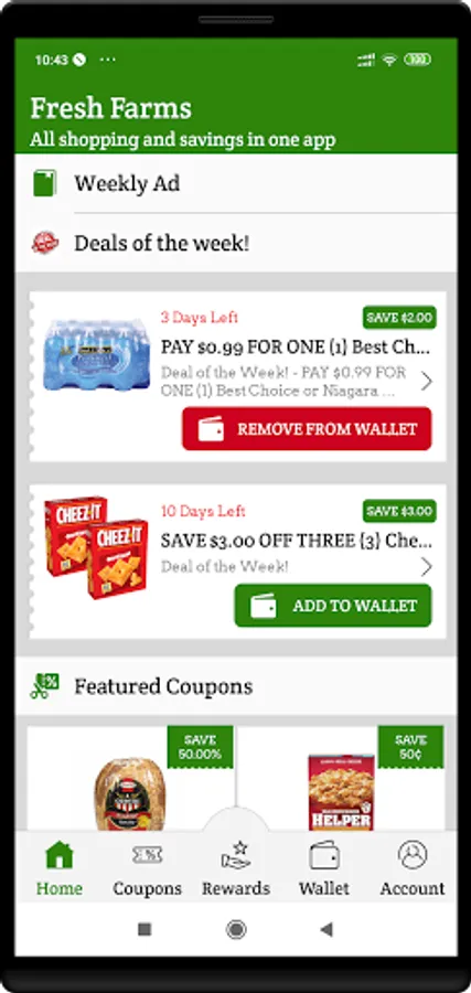 2. Adding coupons and specials to your list in your The Fresh Farms App, and