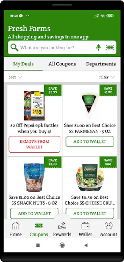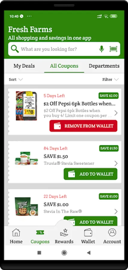 With Fresh Farms Claim as many coupons as you want with one simple scan! No more searching through mailers or printing out emails, Fresh Farms app is bringing rewards right to your mobile device!