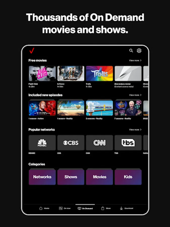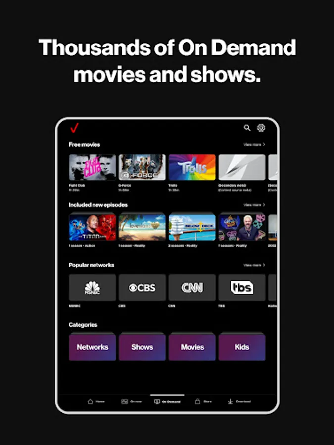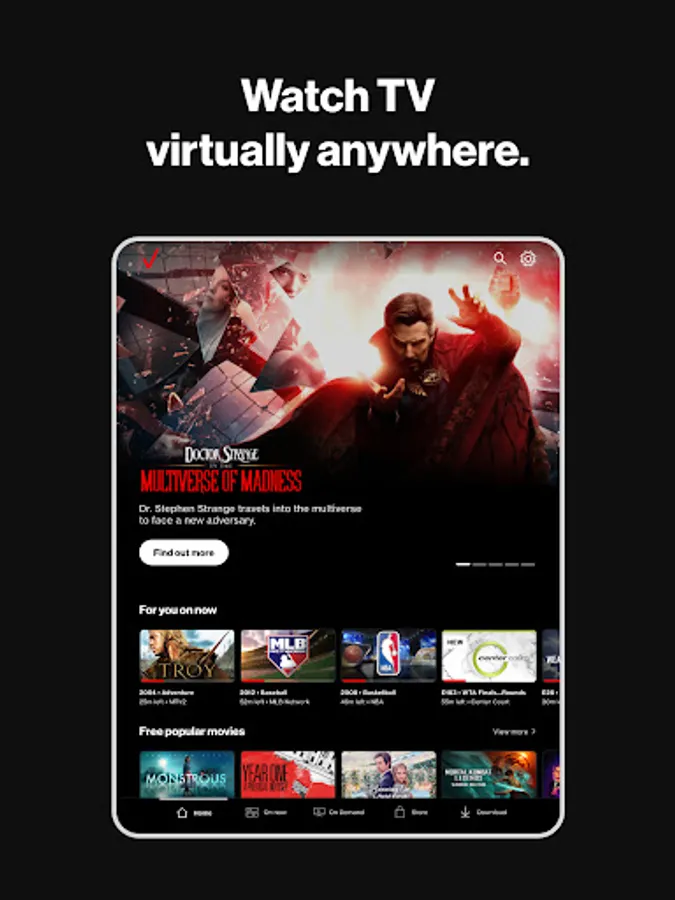 Verizon Fios TV Mobile lets you watch TV from virtually anywhere with a Fios TV subscription.* At home or on the go, you'll enjoy hundreds of channels and thousands of movies On Demand.