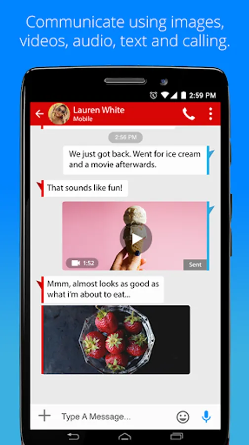 GROUP CHATS – Create larger group chats with up to 250 people. Send and receive photos/videos in seconds. Personalize your chat experience with avatars, backgrounds and more. You can even mute a conversation or add or remove members or without creating a new group.