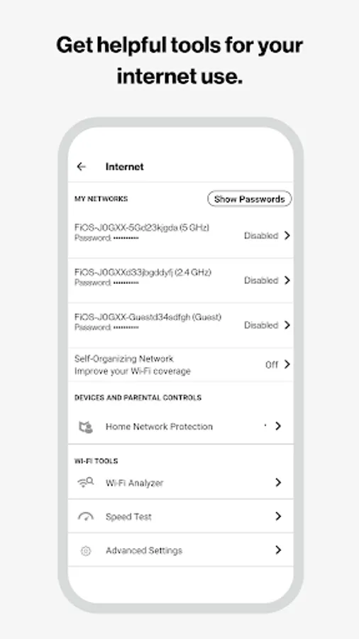 • Access internet tools that allow you to test your home network speed, set parental controls, configure your Wi-Fi and more.