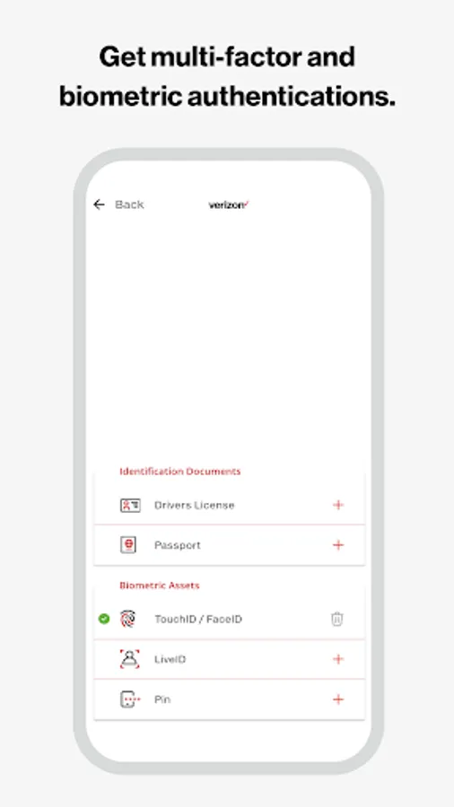 With the Verizon ID app, you can store your identity data securely on your mobile devices and easily provide it to anyone who needs it. Thanks to cutting-edge technologies, including blockchain and biometrics, this app helps you minimize the number of user IDs and passwords you use.