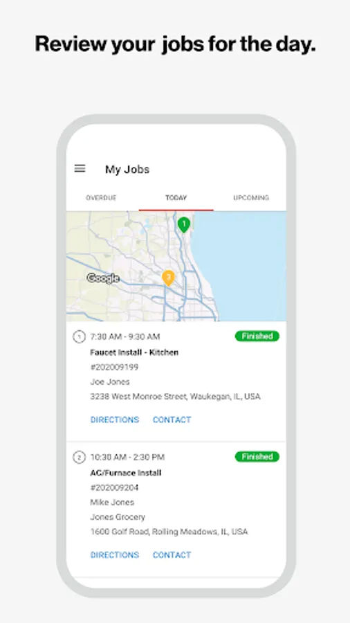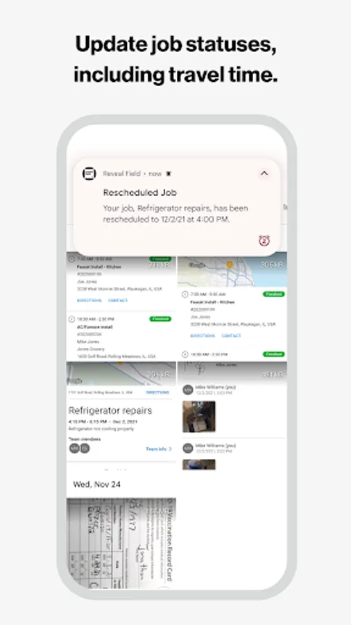 • Review your jobs for the day and receive notifications when your schedule changes.