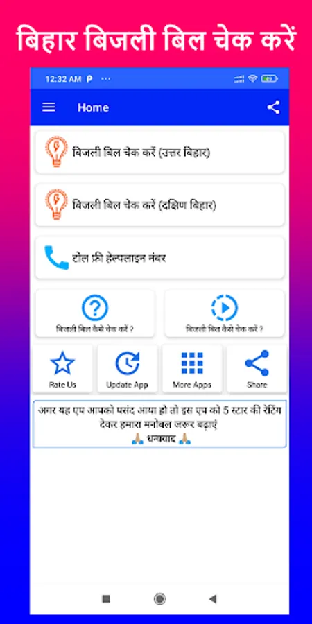 इस एप के द्वारा आप घर बैठे अपना बिजली बिल अपने मोबाइल फ़ोन से बहुत ही आसानी से चेक कर सकते हैं यह एप एक फ्री और प्राइवेट एप है इस एप में थर्ड पार्टी वेब लिनक्स का प्रयोग किया गया है