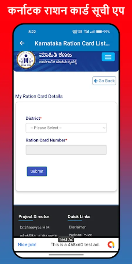 Disclaimer - This app is not being run by any government department, nor is it associated with any government department. This app is made only to provide information to you. All the information displayed in this application is taken from the website of the Food and Civil Supplies Department of Karnataka , which is subject to change. Therefore, before using any information, please confirm the information by visiting the official website. Only then use any information.