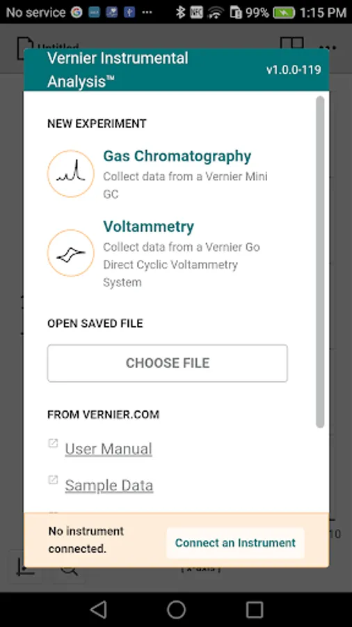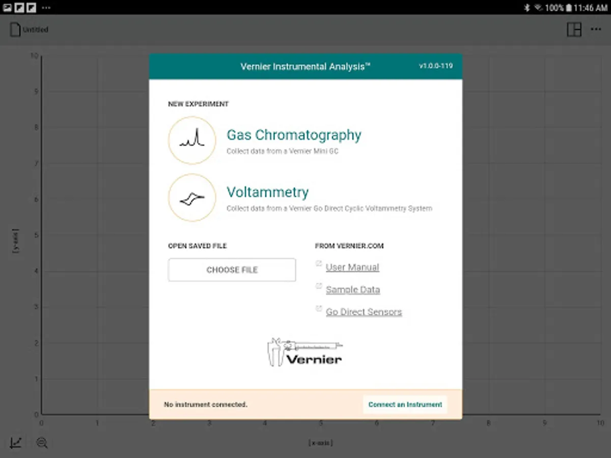 Our free Vernier Instrumental Analysis™ app makes it easy to incorporate instrumentation into your chemistry curriculum. The user-friendly interface walks students through the data-collection process and includes instrument-specific analysis features.