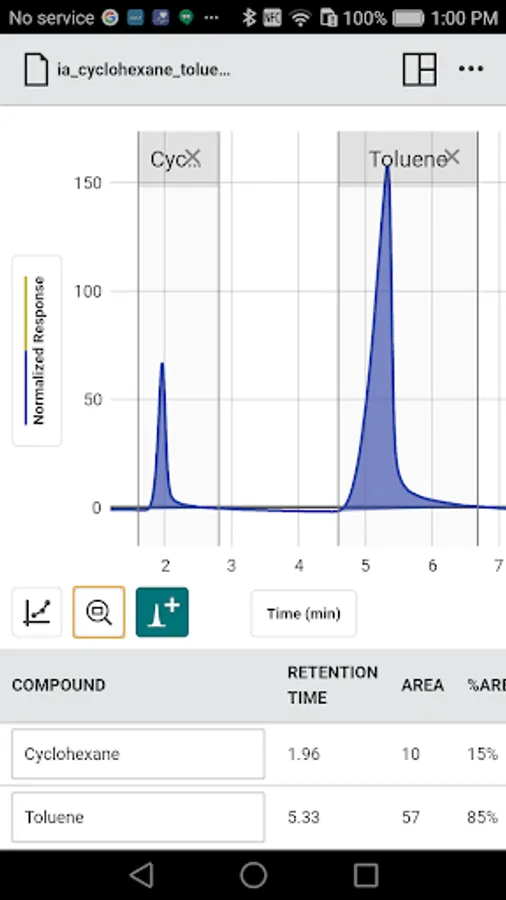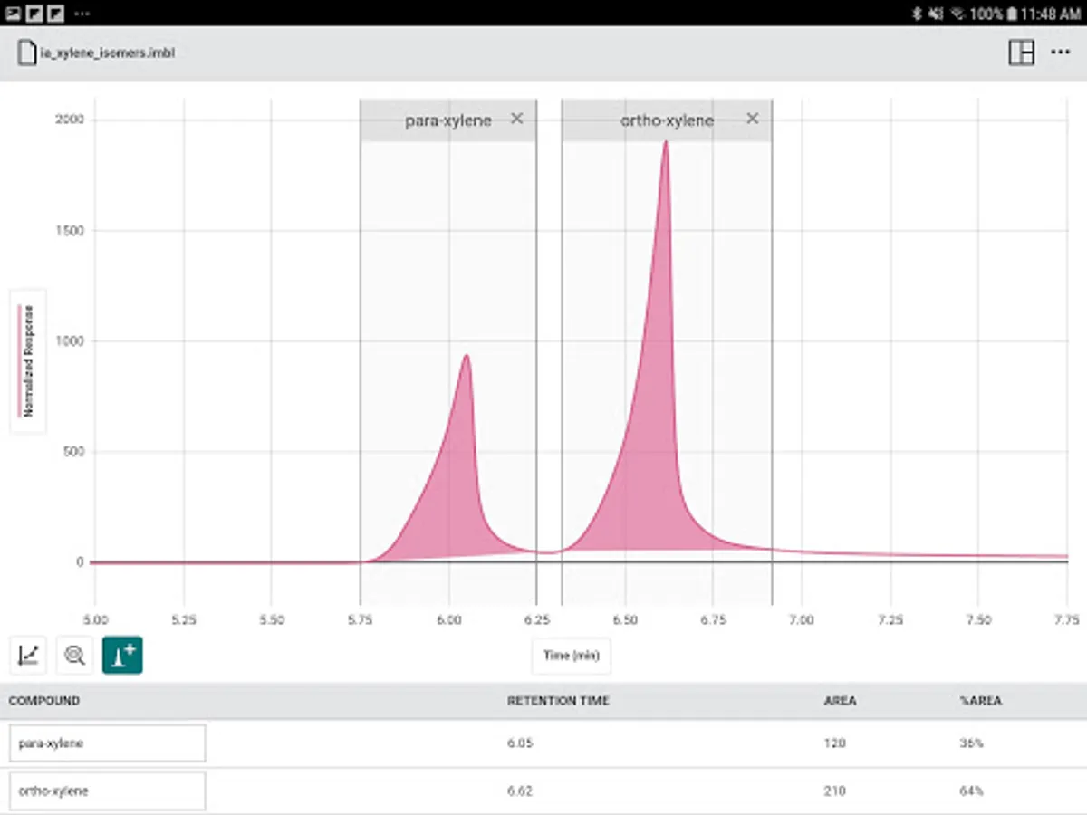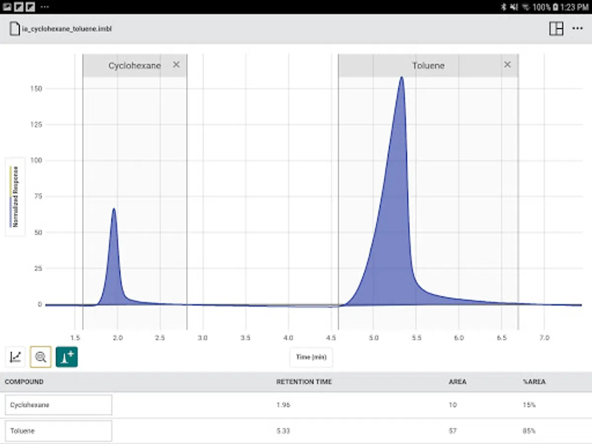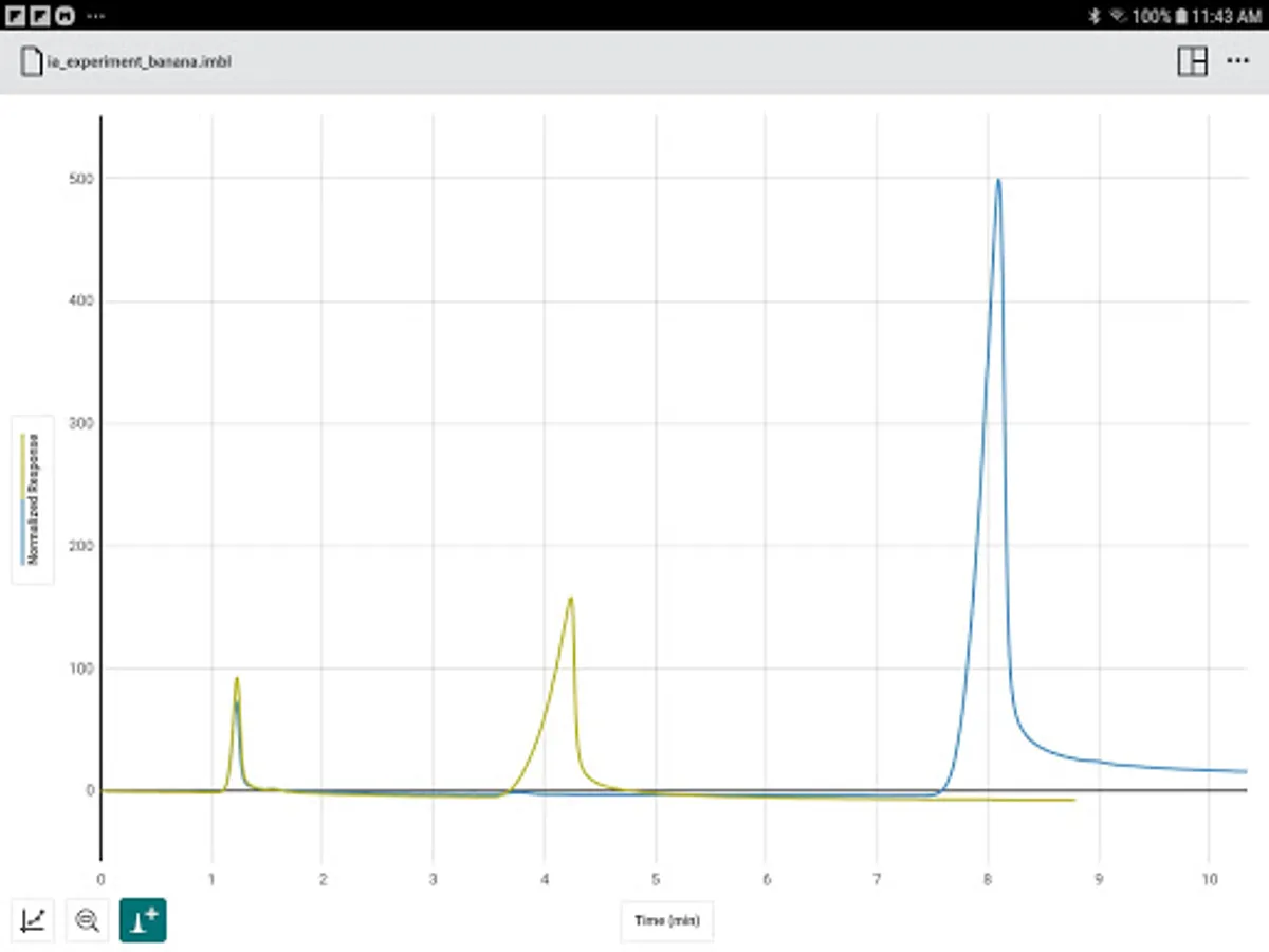 Students can collect a gas chromatogram from the Vernier Mini GC, Mini GC Plus, and Go Direct Mini GC. They can also determine peak area and integrate peaks.