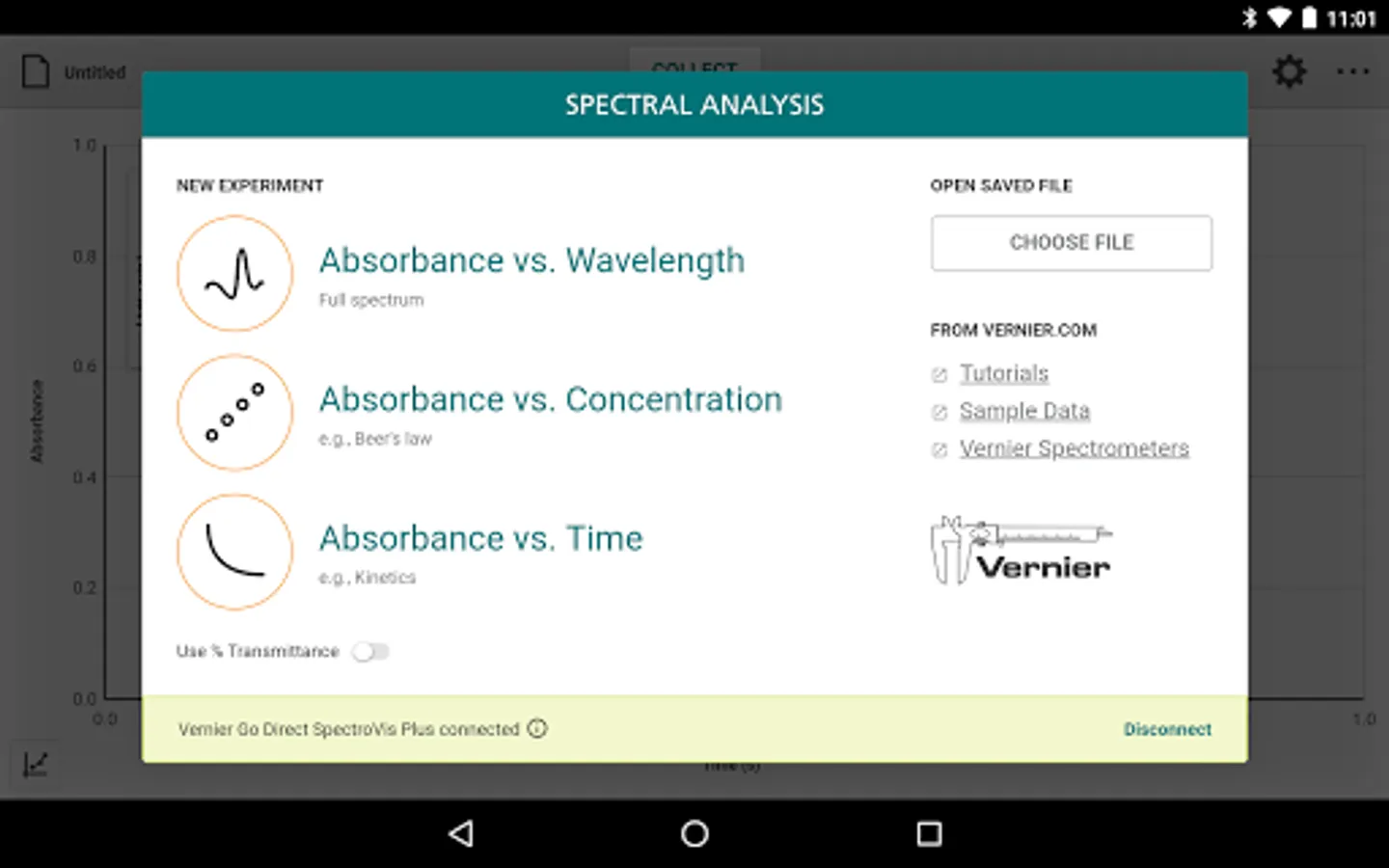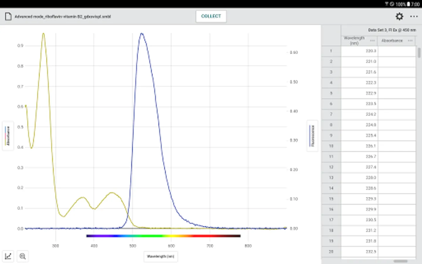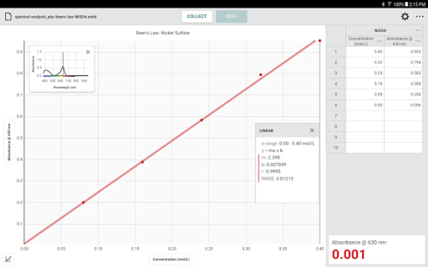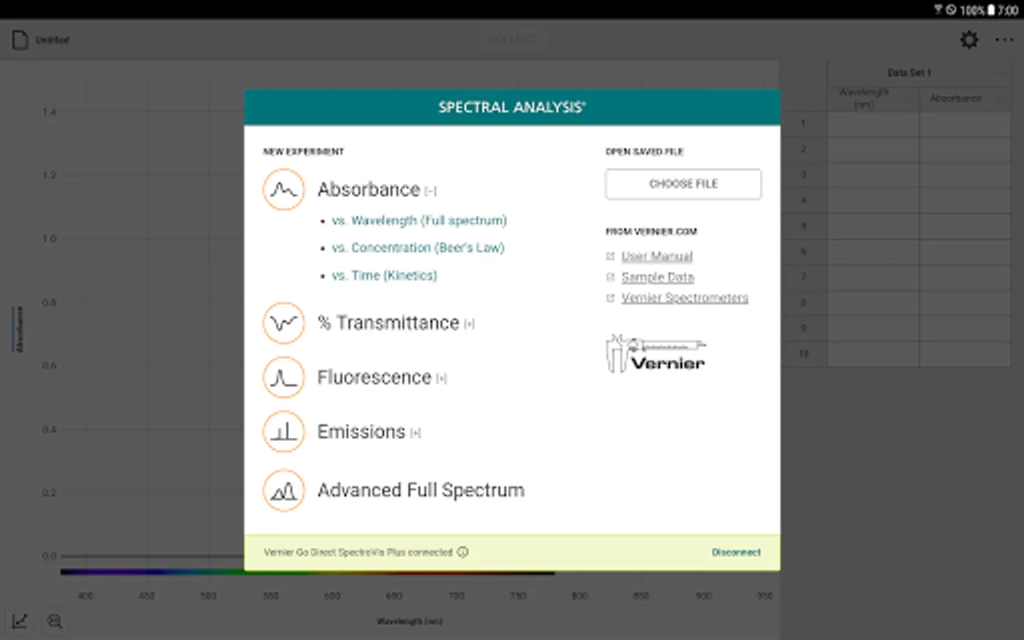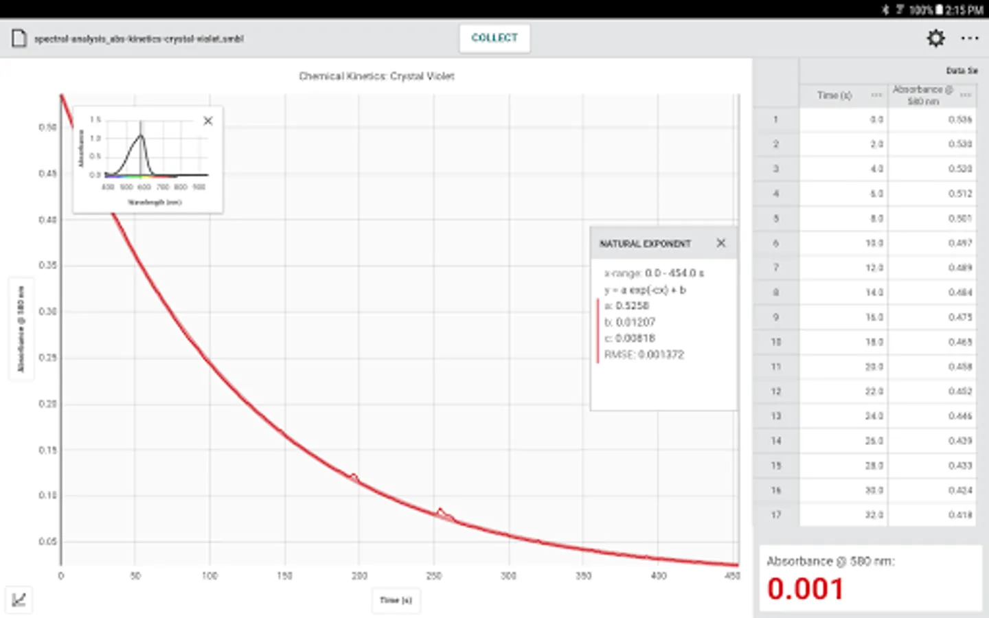 Our free Spectral Analysis app makes it easy to incorporate spectroscopy into your biology and chemistry labs. Using the app, students can collect a full spectrum and explore topics such as Beer’s law, enzyme kinetics, and plant pigments.