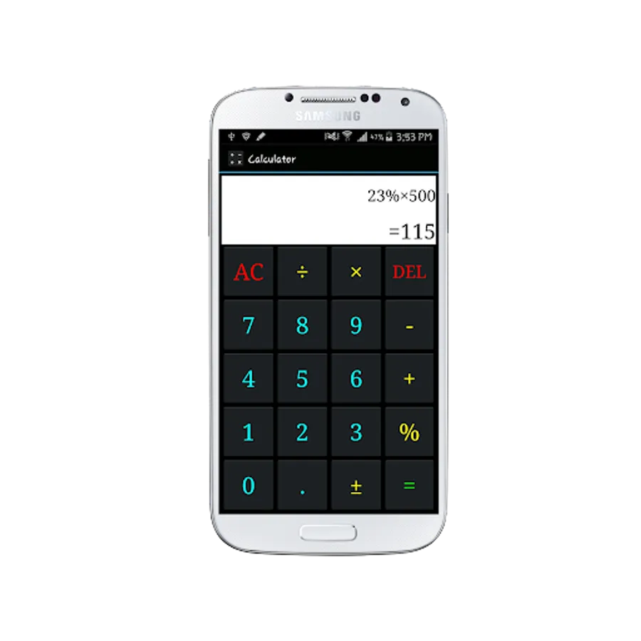 Apart from the basic math operations like addition, subtraction, multiplication and division; this calculator has percent and backspace (DEL) functionality as well.