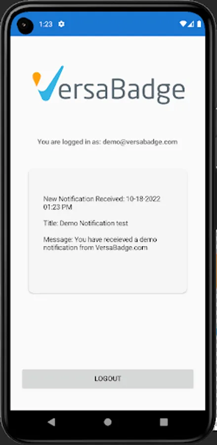 VersaBadge Alert is a companion app for the VersaBadge Staff Alerting system. After the user securely logs in the app delivers staff duress messages as notifications straight to the user's personal device. The notifications can be delivered regardless of whether or not a user has the app open.
