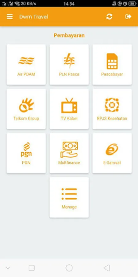9. Purchase -> Credit, Data Packages, Topup, Prepaid PLN, Game Vouchers & Manage