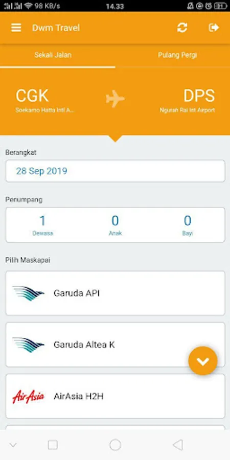 * Booking (Citilink, Garuda API, Garuda Altea, Sriwijaya, Lion Air, Air Asia,