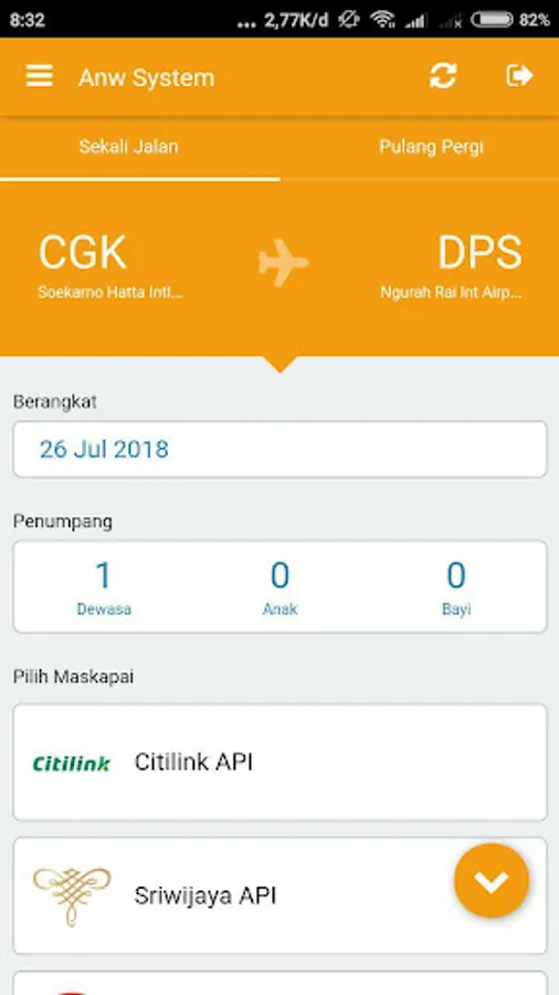 *Booking (Citilink, Garuda API, Garuda Altea, Sriwijaya, Lion Air, Air Asia,