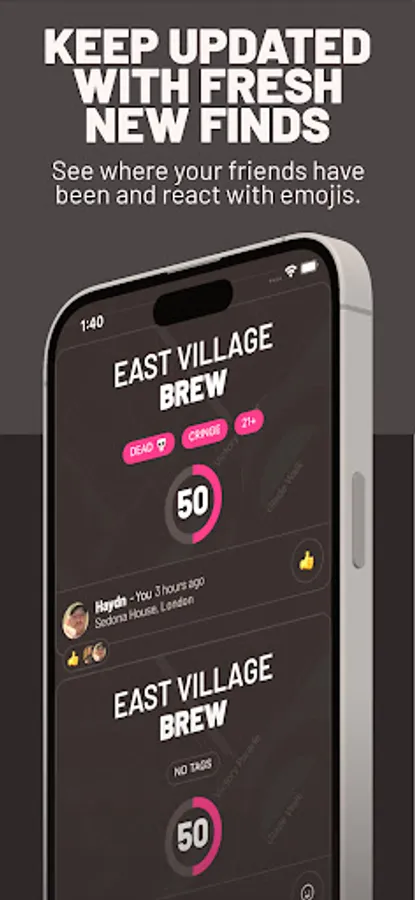 Explore - βοΈ Constantly seek out new bars, clubs and activities with the confidence that they come recommended by your mates. π€ The best place you've ever been, or a bit rubbish? Go ahead and embrace your true opinionsβfeel free to be honest with your rankings and let others know what you really think! π£οΈπ―