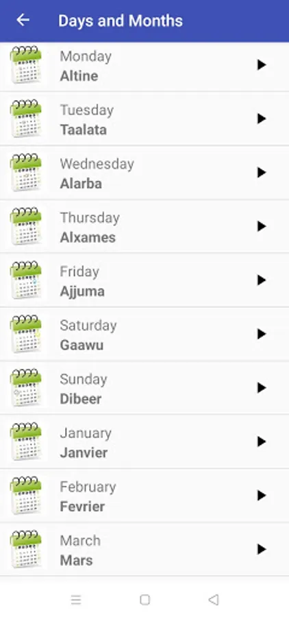 This digital audio application aims to teach Wolof to as many people as possible. More than 1000 words and expressions are available in this application, moreover the authentic Wolof pronunciations are present there so that their repetitions are possible.