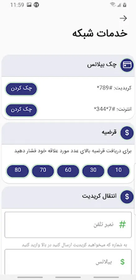 با استفاده از این برنامه شما می توانید بسته های انترنیت، پیام، تماس، از تمام شرکت های مخابراتی افغانستان با خبر شده و آنرا به راحتی فعال غیر فعال نمایید