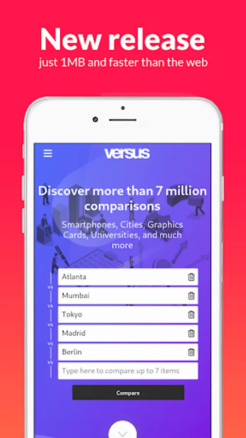 Versus is a global data-driven comparison platform, covering over 90 categories. Compare smartphones, cameras, headphones, graphics cards, and much more. With detailed tech specs, data visualizations, and price comparisons, Versus is the best product finder for a wide range of consumer electronics, from smartphones to PC hardware.