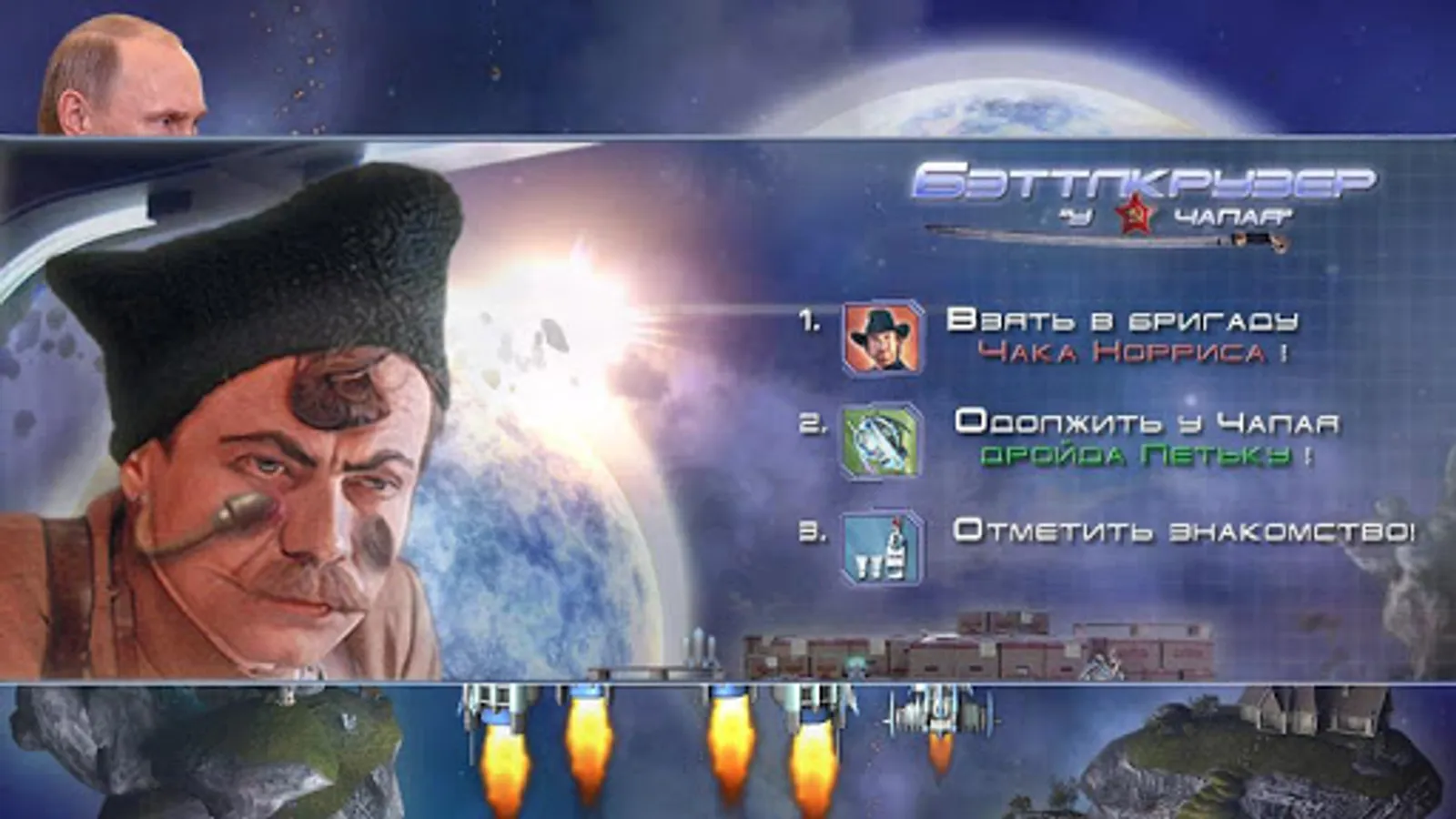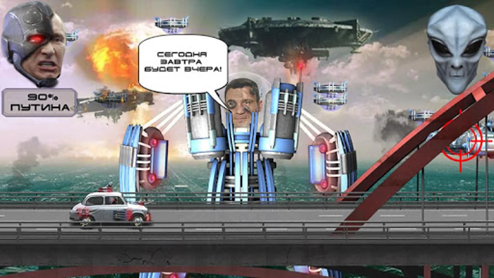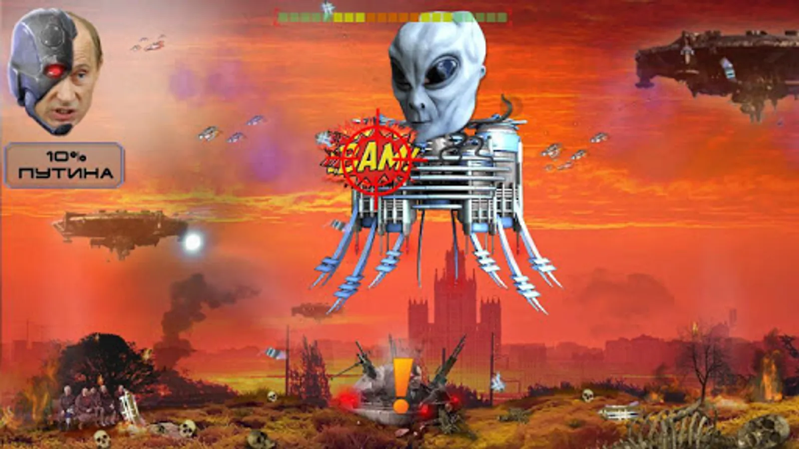 2015. Vladimir Vladimirovich performs the duties of President of the Russian Federation, unexpectedly, in the middle of the working day, call aliens. They say they are ready to destroy mankind and only the BB can save the planet from ruin. Naturally, BB receives a call. But it is not alone - he will help loyal friends are in love with him and women, of course, the people of Russia. Journey into the future space flight, acquaintance with Stalin - this is what awaits you in the new original game "Putin vs. Aliens"!