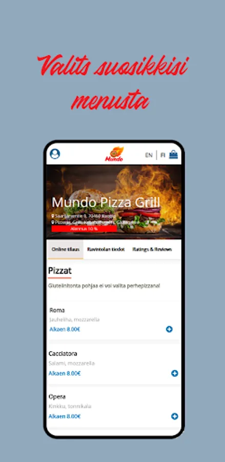 In the Mundo Pizza Grill app you will find all the restaurant's selections at low prices and with the best offers! You can pre-order, pick up from the restaurant or enjoy at home. With the help of the application, help is best found for every situation.
