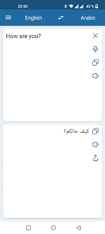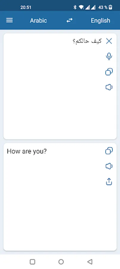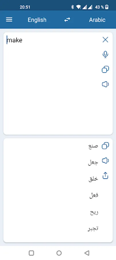 This app is able to translate words and text from Arabic to English, and from English to Arabic.