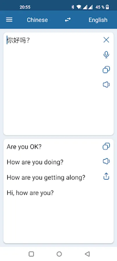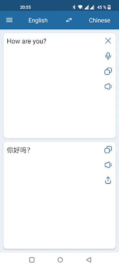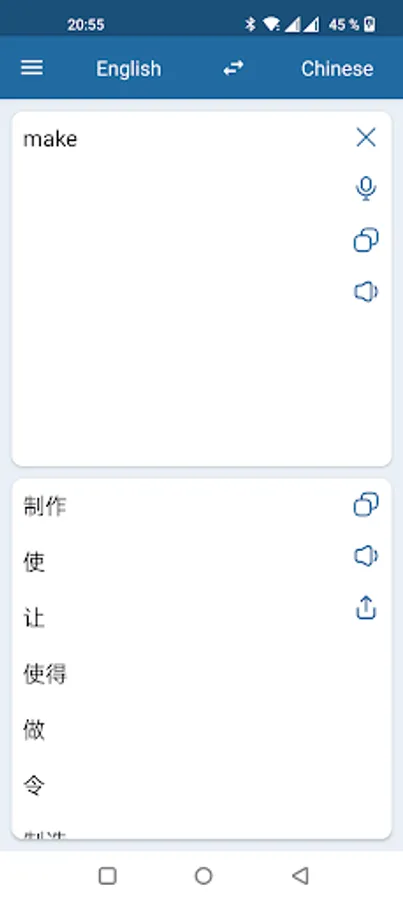 This app is able to translate words and text from English to Chinese, and from Chinese to English.