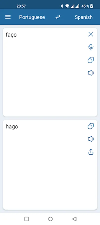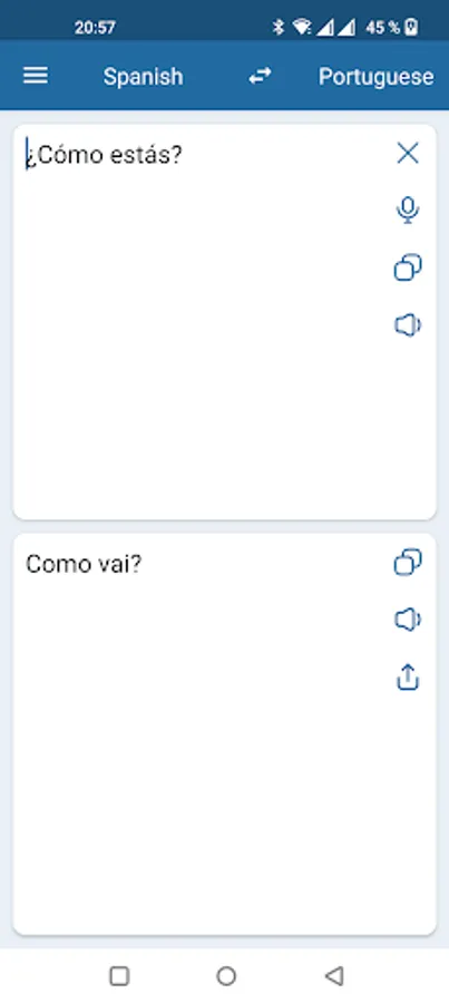 This app is able to translate words and text from Spanish to Portuguese, and from Portuguese to Spanish.