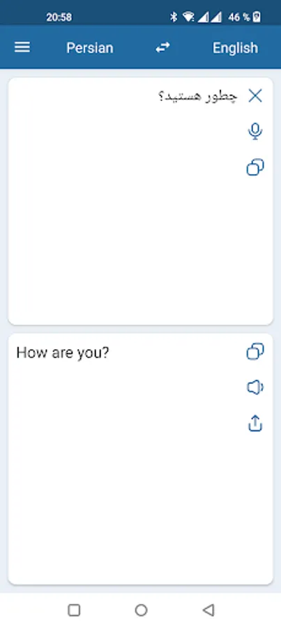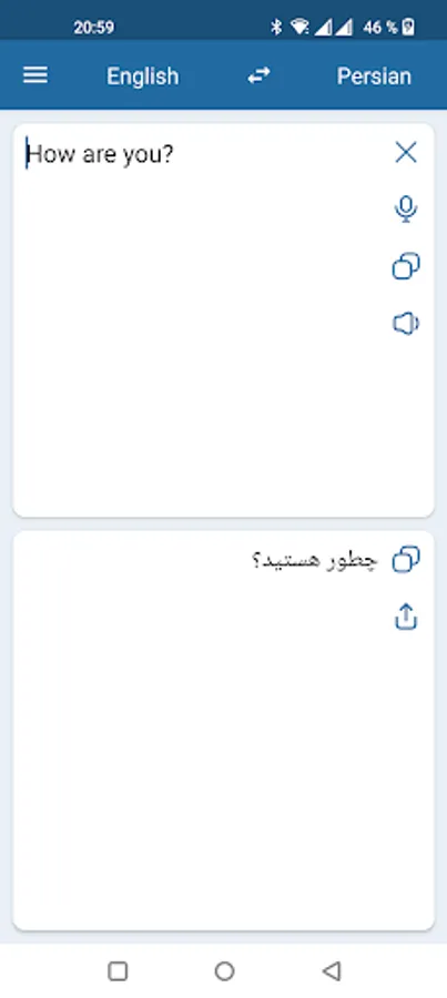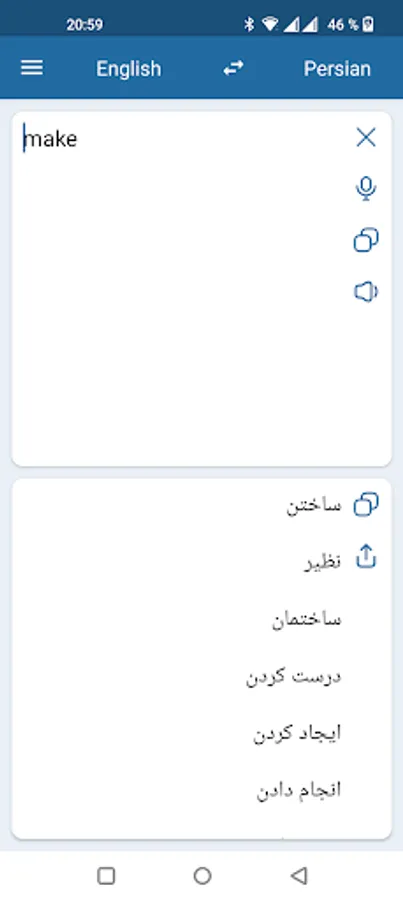 This app is able to translate words and text from Persian to English, and from English to Persian.