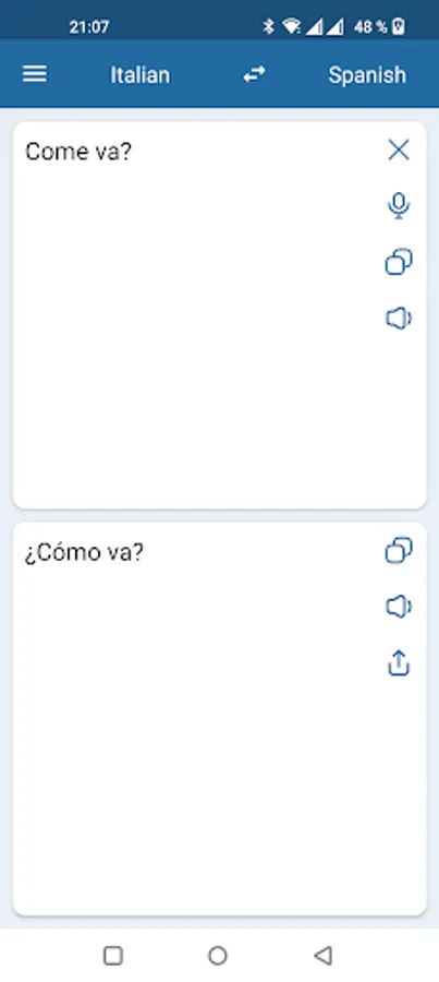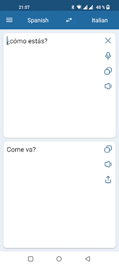 This app is able to translate words and text from Italian to Spanish, and from Spanish to Italian.