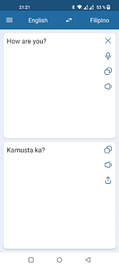 This app is able to translate words and text from Filipino to English, and from English to Filipino.