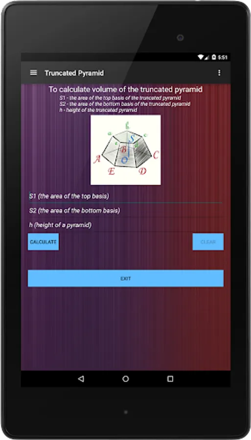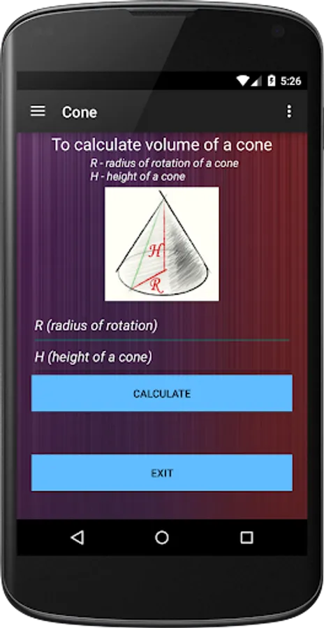 Before you have the best application of the formulas, containing the basic formulas and information on the geometry. The app allows you to calculate the volume instantly, without waiting.